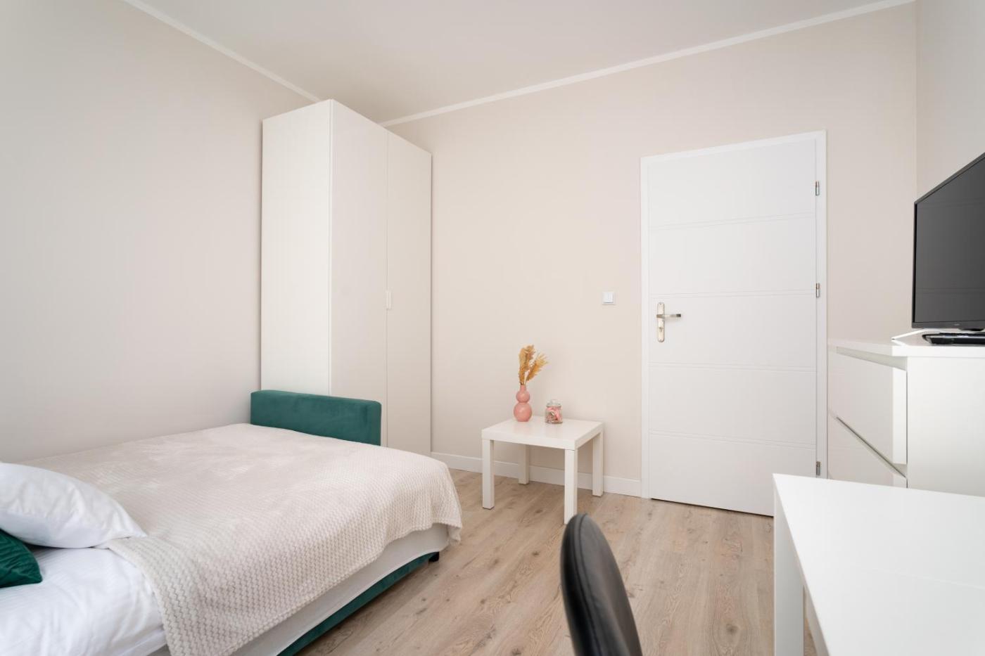 Apartament z 1 sypialnią. Boasting a private entrance, this apartment also comes with 1 bedroom, a seating area and 1 bathroom with a shower and a hairdryer. Meals can be prepared in the kitchen, which features a stovetop, a refrigerator, a dishwasher and kitchenware. This apartment has a washing machine, flat-screen TV with streaming services, city views, as well as chocolate for guests. The unit has 1 bed. Apartament - 2 osobowy. Powierzchnia pokoju ok.: 30 mkw. ;