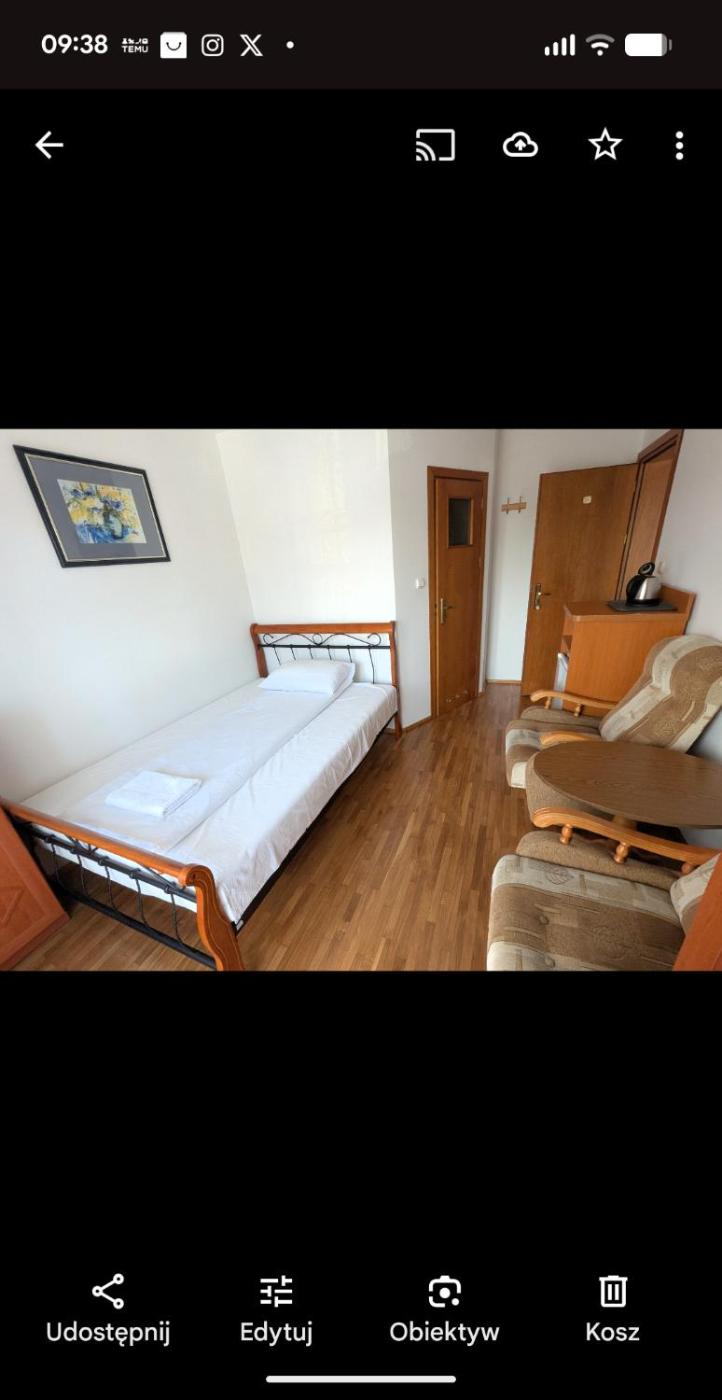 Pokój Dwuosobowy z balkonem. Jest to pokój dwuosobowy z prywatną łazienką, szafą, czajnikiem elektrycznym oraz balkonem. Do dyspozycji gości jest 1 łóżko. Pokój Dwuosobowy - 2 osobowy. Powierzchnia pokoju ok.: 12 mkw. ;