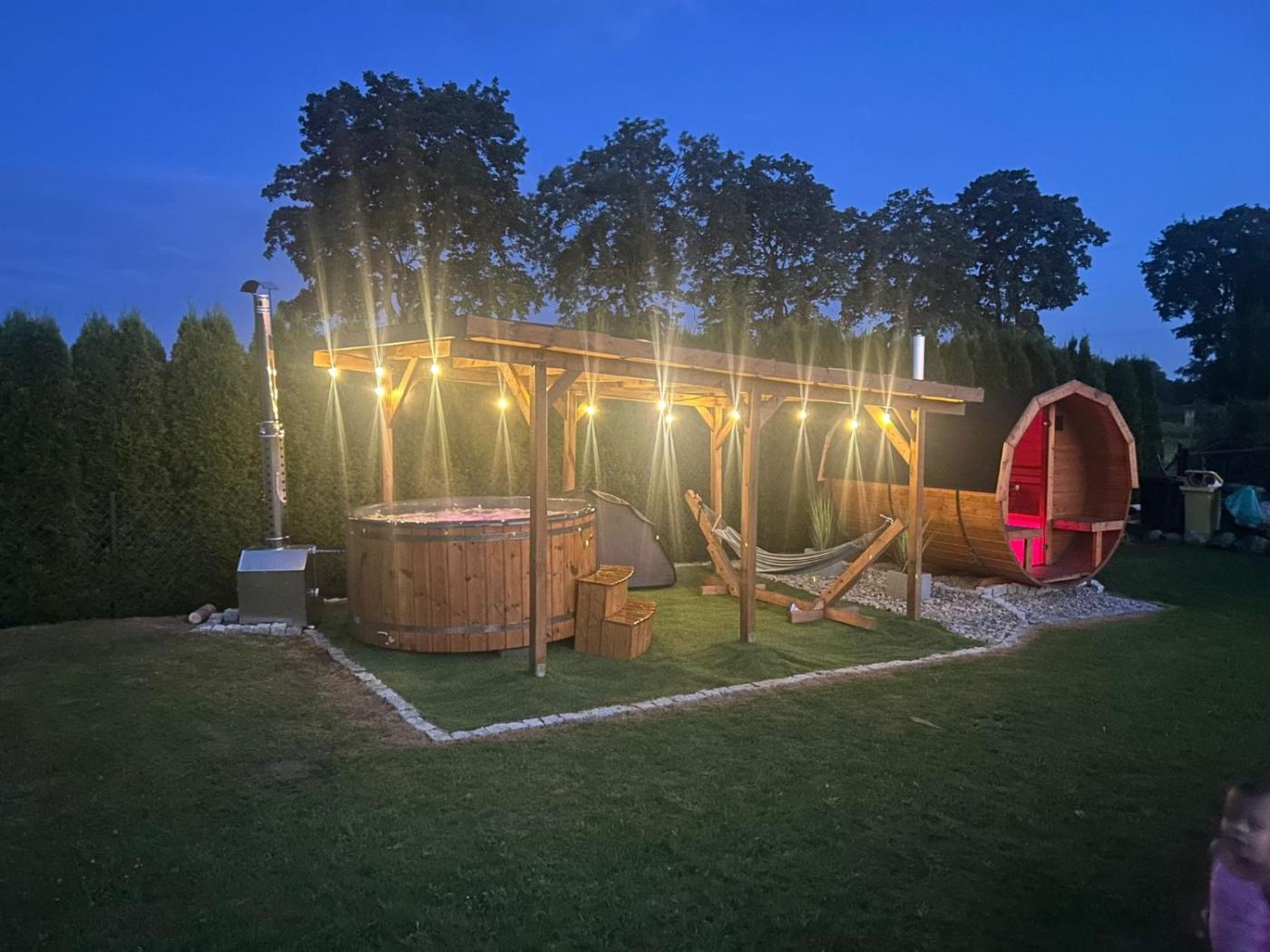 Dom z 1 sypialnią. This holiday home boasts a pool with a view and a sauna. Featuring a private entrance, this holiday home consists of 1 living room, 1 separate bedroom and 1 bathroom with a shower. Guests will find a stovetop, a refrigerator and kitchenware in the kitchen. The holiday home also offers a barbecue. Boasting a terrace with lake views, this holiday home also provides a tea and coffee maker and a flat-screen TV with cable channels. The unit offers 2 beds. Dom wakacyjny - 5 osobowy. Powierzchnia pokoju ok.: 15 mkw.